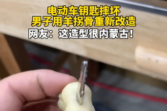 电动车钥匙摔坏,男子用羊拐骨重新改造,网友:这造型很内蒙古!