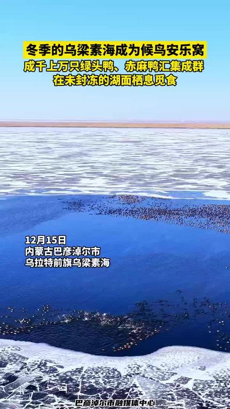 冬季的乌梁素海成为候鸟安乐窝,成千上万只绿头鸭、赤麻鸭汇集成群,在未封冻的湖面栖息觅食