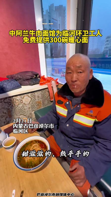 新春走基层·暖巴行动 中阿兰牛肉面馆为临河环卫工人免费提供300碗暖心面
