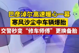 巴彦淖尔高速暖心一幕,寒风沙尘中车辆爆胎,交警秒变“修车师傅”更换备胎