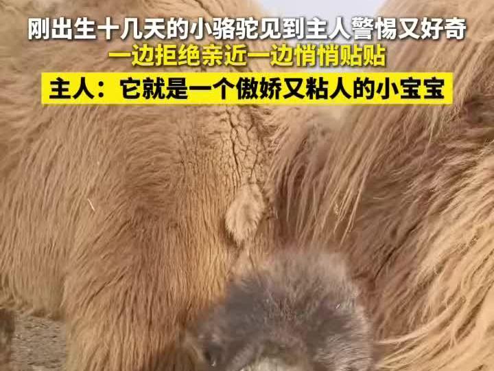 刚出生十几天的小骆驼见到主人警惕又好奇,一边拒绝亲近一边悄悄贴贴,主人:它就是一个傲娇又粘人的小宝宝