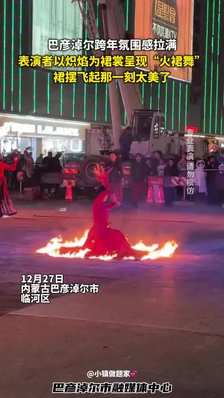 巴彦淖尔跨年氛围感拉满,表演者以炽焰为裙裳呈现“火裙舞”,裙摆飞起那一刻太美了