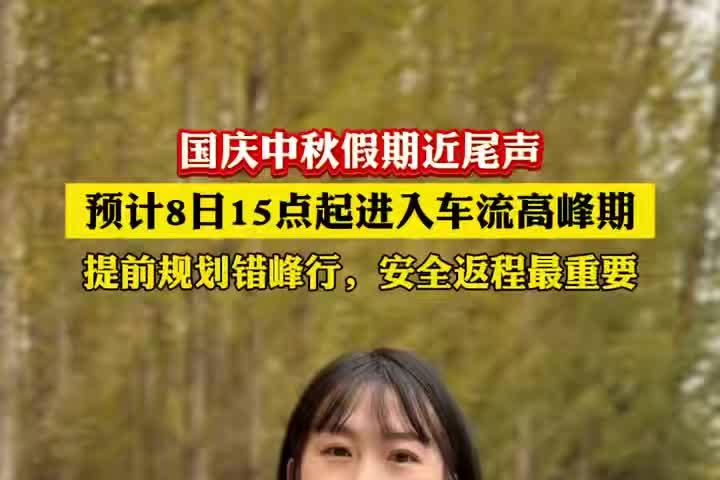 国庆中秋假期近尾声,预计8日15点起进入车流高峰期,提前规划错峰行,安全返程最重要