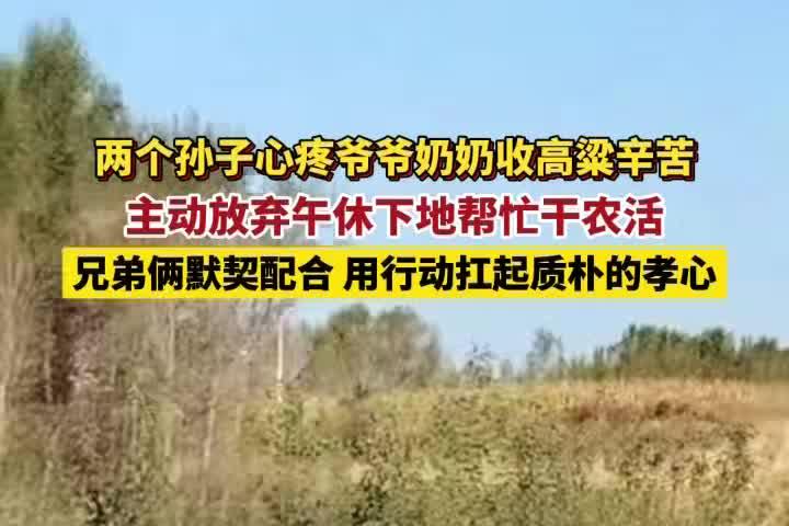 两个孙子心疼爷爷奶奶收高粱辛苦,主动放弃午休下地帮忙干农活,兄弟俩默契配合,用行动扛起质朴的孝心