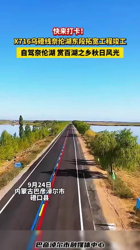快来打卡!X716乌磴线奈伦湖东段拓宽工程竣工,自驾奈伦湖,赏百湖之乡秋日风光
