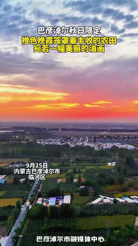 巴彦淖尔秋日限定,橙色晚霞笼罩着丰收的农田,宛若一幅美丽的油画