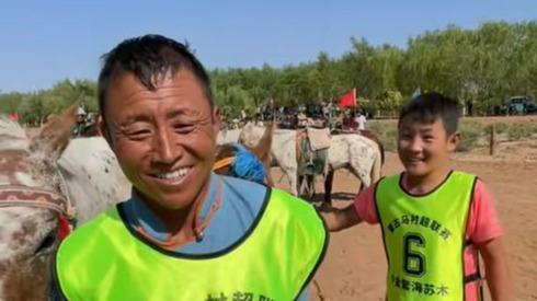 内蒙古巴彦淖尔7岁小男孩骑龄两年,勇夺那达慕10000米赛马冠军,比赛结束后还得大人抱下马