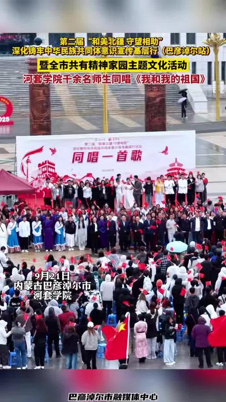 第二届“和美北疆 守望相助”深化铸牢中华民族共同体意识宣传基层行活动(巴彦淖尔站)暨全市共有精神家园主题文化活动,河套学院千余名师生同唱《我和我的祖国》