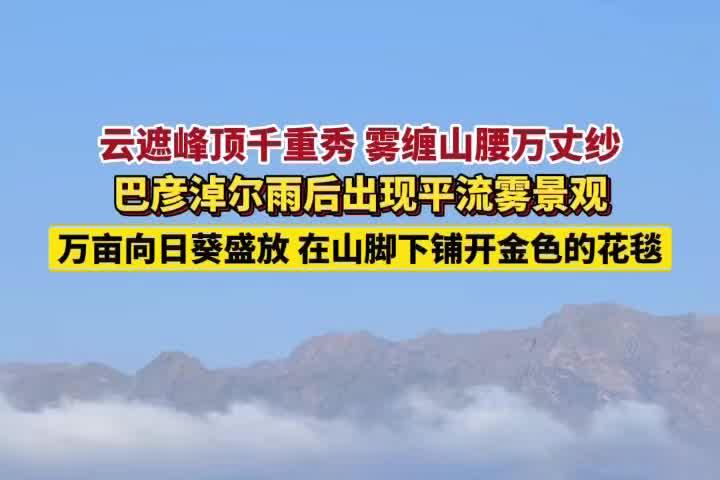 云遮峰顶千重秀,雾缠山腰万丈纱,巴彦淖尔雨后出现平流雾景观,万亩向日葵盛放,在阴山脚下铺开金色的花毯