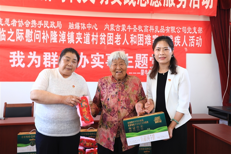 6月29日,磴口县补隆淖镇夹道村党员志愿服务队联合磴口县暖心志愿者协会、内蒙古蒙牛圣牧高科乳品有限公司开展了主题为“丝丝银发 缕缕温情”的志愿服务活动,看望慰问困难老人和困难家庭残疾人。