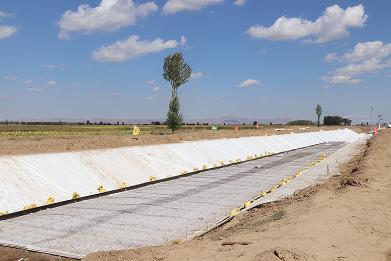 渠道衬砌 巴彦淖尔日报记者 周文廷 摄