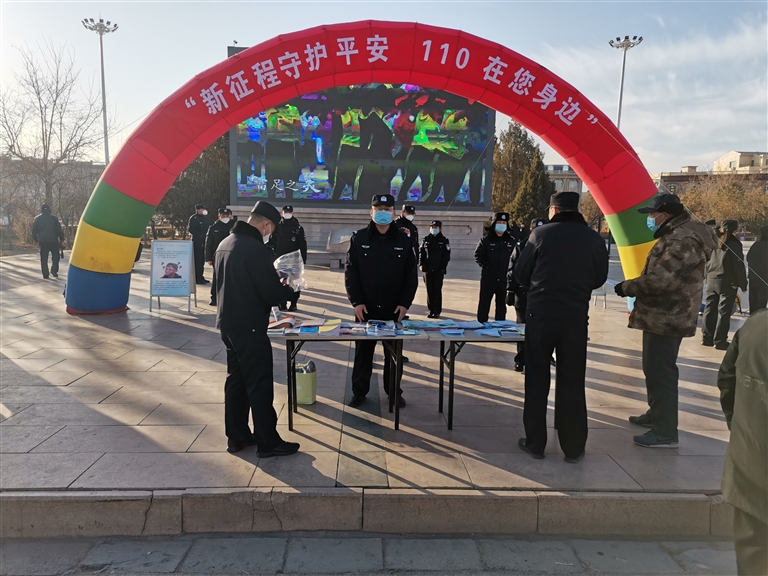 1月10日上午,磴口县公安局经侦大队组织民警深入辖区开展“新征程守护平安 110在您身边”主题宣传活动。