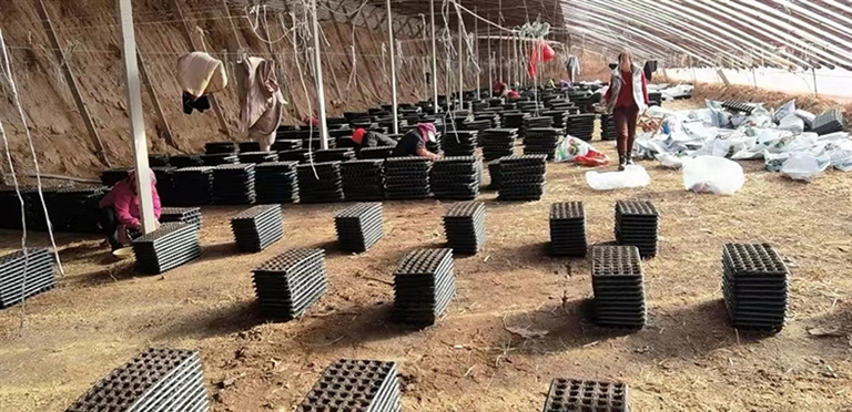 近日,在磴口县隆盛合镇温室育苗大棚里,农户们趁着好天气开始清理大棚,播种育苗,为新一年的瓜果种植作准备。一批优质种苗即将出苗,变成一片片绿油油的大田,成为农民增收的“绿色银行”。