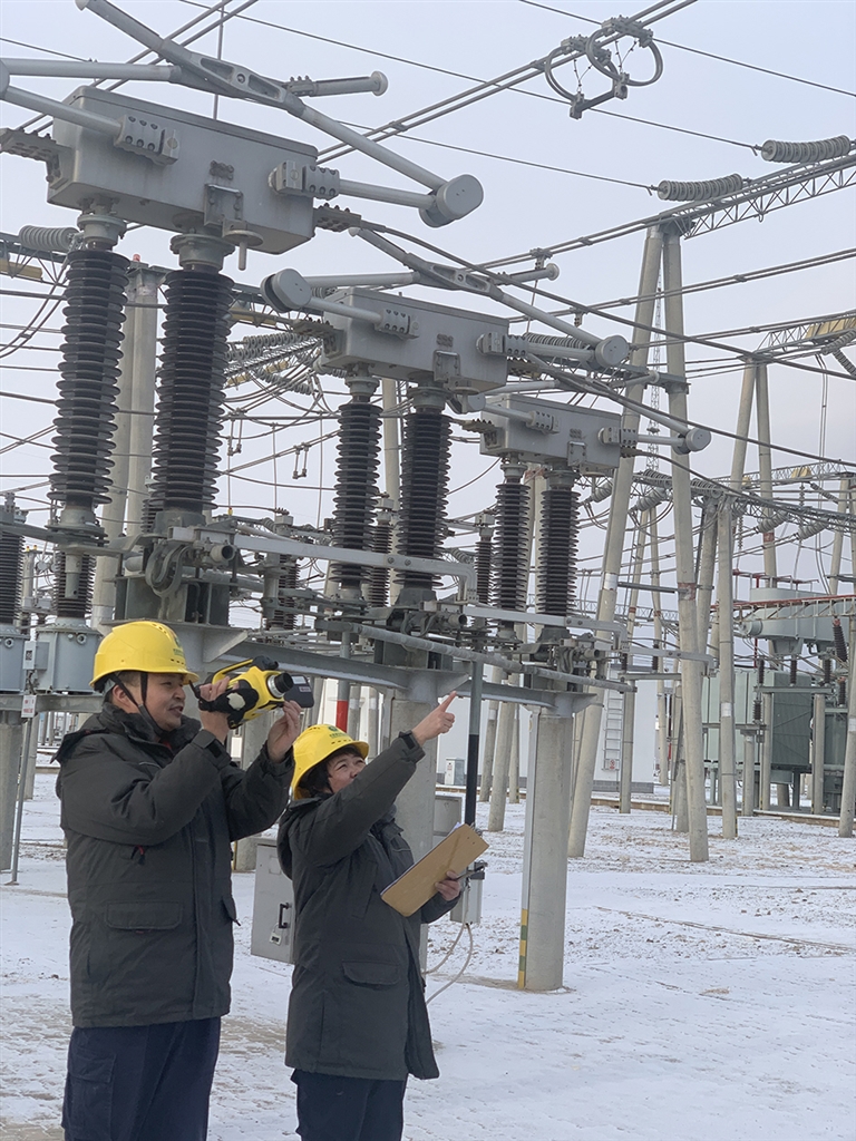 当日,宝音太变电站当值人员迅速开展雪后特巡,重点对充油、充气设备的油位指示、气压值,机构箱门封闭保温情况、设备机构箱及附属设施防冻加热装置运行情况是否正常进行仔细排查,并着重对站内刀闸及支柱绝缘子表面因降雪而形成冰凌进行清除,及时消除了因大风降雪对设备造成的隐患,提高了设备可靠性,保证了电网正常运行。