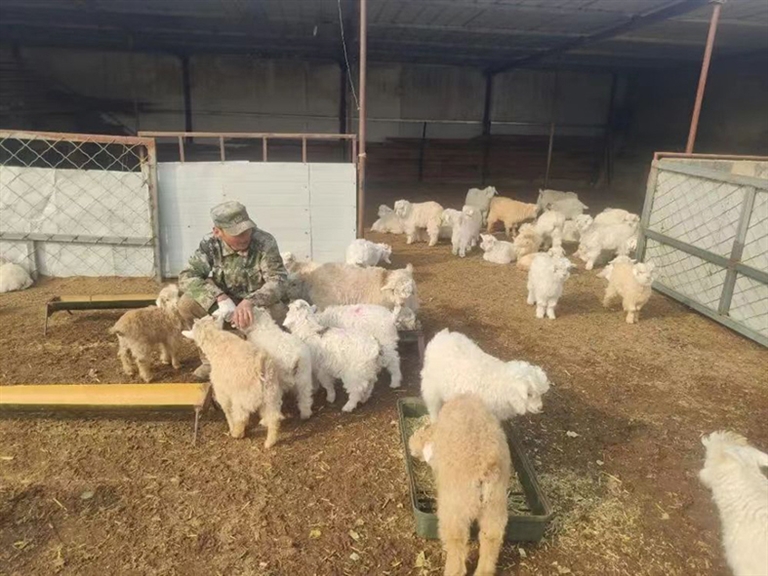 刘畅是沙德格苏木毕克梯嘎查最年轻的养殖大户。2005年,18岁的他毅然决然地加入到了养殖行业,13年的时间里他家羊的存栏量已经达到了1000多只。在此期间,他还自学了很多新型养殖方法。这几年虽然忙碌且辛苦,但收获颇多,也尝到了养殖带来的甜头。“我这些羊一年能下两茬羊羔,仅去年冬天我就接了400多只羊羔,现在羊羔的价格也很可观,一斤精品羊羔肉在49块钱左右。我想今年继续扩大养殖规模,多学习人家科学高效的养殖经验。”刘畅一边给羊添加饲草一边说。