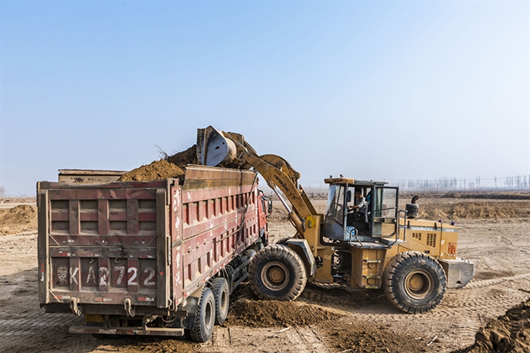 “正月初八开始进场,每天的机械大约是40台左右,人员是100人左右,每天施工的土方大约是15000方,计划3月底土方全部完成,不误村民分地、春播。计划在4月底建筑物、毛渠口闸也全部完成,6月底衬砌工程也全部完成。”和胜乡高标准农田建丰村施工二标段负责人孙国兴介绍说。