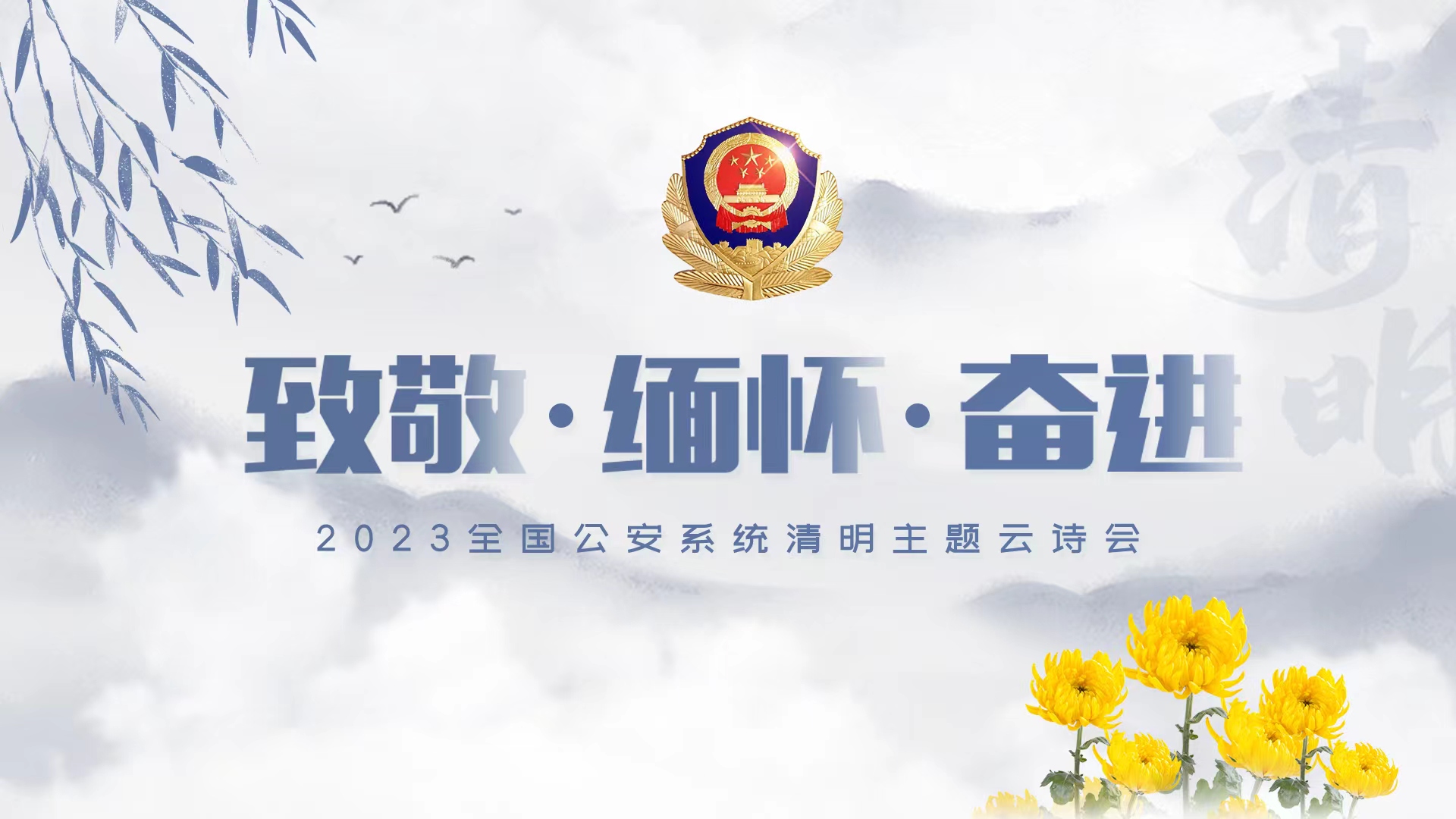 “致敬·缅怀·奋进”2023年全国公安系统清明主题云诗会由公安部新闻宣传局、全国公安文联、湖北省公安厅联合主办。