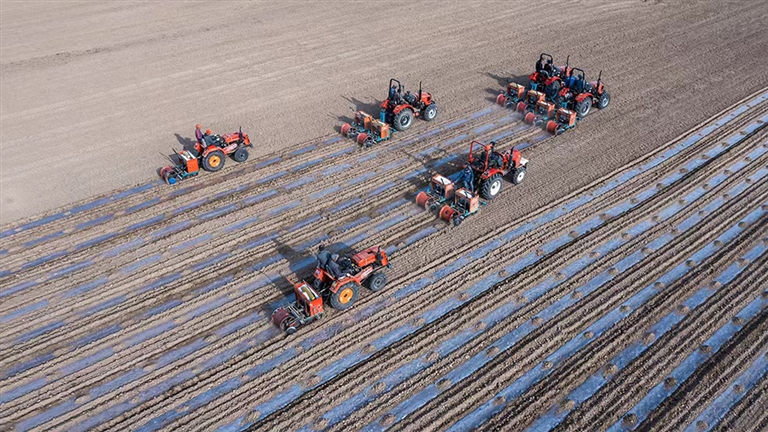 地膜是不可或缺的农业生产保障,地处黄河之北的五原县是农业大县,亦是地膜使用大户。今年,在铺膜盛期,五原县紧抓农时开展作业,铺设高强度加厚膜与全生物可降解膜,为农田穿上“环保衣”,让田间“白色污染”转为绿色护地优质品,让农事生产真正走上生态优先、绿色发展之路。