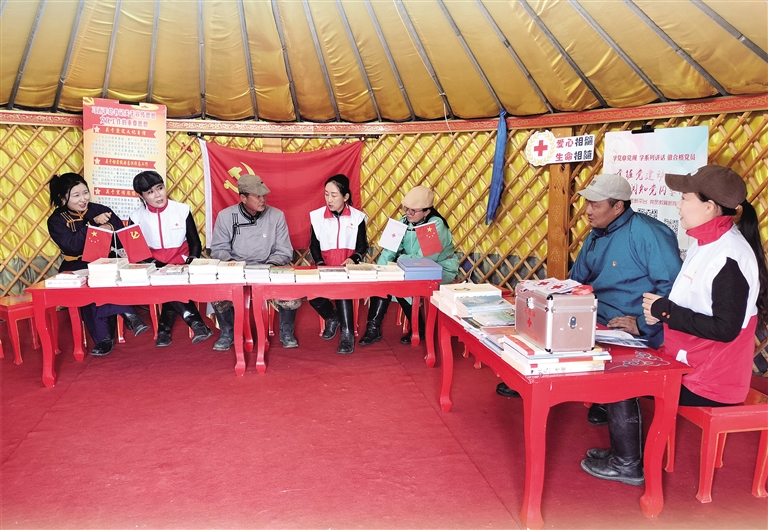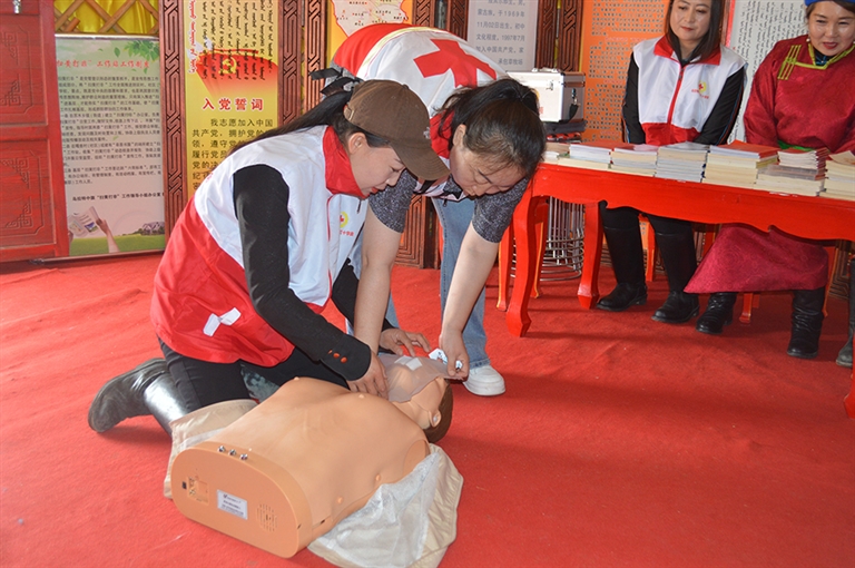 5月10日,乌拉特中旗温更镇哈日朝鲁嘎查牧民敖其尔那顺的蒙古包里格外热闹。乌拉特中旗红十字会组织鸿雁女子志愿服务骑行队将应急救护培训课堂搬到了草原蒙古包,为这里的牧民带来了一堂别开生面的应急救护宣传培训课。
