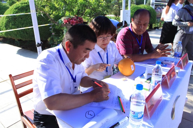 在华莱士瓜品评中,一颗颗金灿灿、黄澄澄的华莱士瓜散发着诱人的香气,评委组对参赛瓜的外形、颜色、口感、香气、含糖量等多项指标进行综合打分,最终,来自纳林套海农场的王伟获得一等奖和2023年华莱士“瓜王”称号。