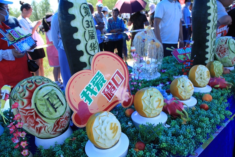 华莱士瓜品评暨特色农产品展示活动是每年华莱士节的必备项目,一大早,甜玉米、华莱士、生态鱼、有机奶、葡萄酒、花瓣馍、肉苁蓉、非遗手工艺品等多种当地名优特产就摆满了活动展台,引来本土网红齐聚现场、直播推介。