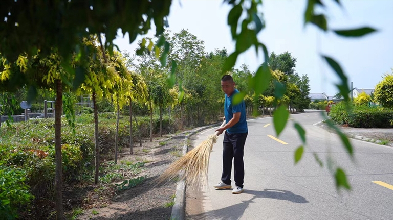 在五原县隆兴昌镇联星光伏新村的主干道上,村民庄小孔正在忙着清理道路上的垃圾和道路两旁的杂草。庄小孔今年54岁,因为妻子常年卧病在床需要照顾,不适合外出打工,在村委会的帮助下,他成功申请到了村容保洁员这个乡村公益性岗位。“这个工作挺适合我,离家近,方便照顾家里,什么都不误事。公益岗,让我的生活有保障,我挺满意的。”庄小孔说。