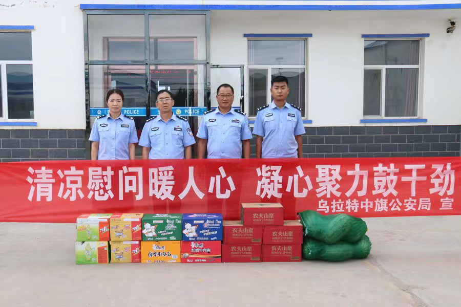 近日,乌拉特中旗公安局相关负责人来到中旗基层派出所、监所等地,为奋战在高温酷暑一线的民警送去防暑降温慰问品,送去夏日清凉和组织关怀。