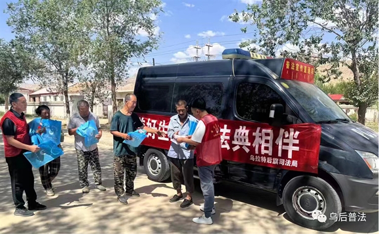 近日,乌拉特后旗司法局乌盖司法所工作人员走进巴音塔拉嘎查,开展普法直通车送法进嘎查活动,进一步强化群众法律意识,增强大家对《中华人民共和国民法典》的了解,营造全体村民知法、遵法、守法的良好氛围。