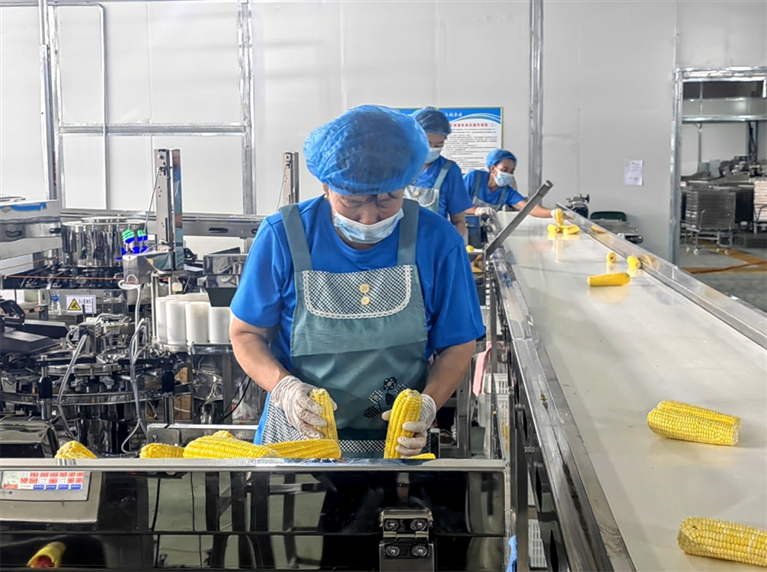 乌加河镇日产10万棒鲜糯玉米加工生产线投产