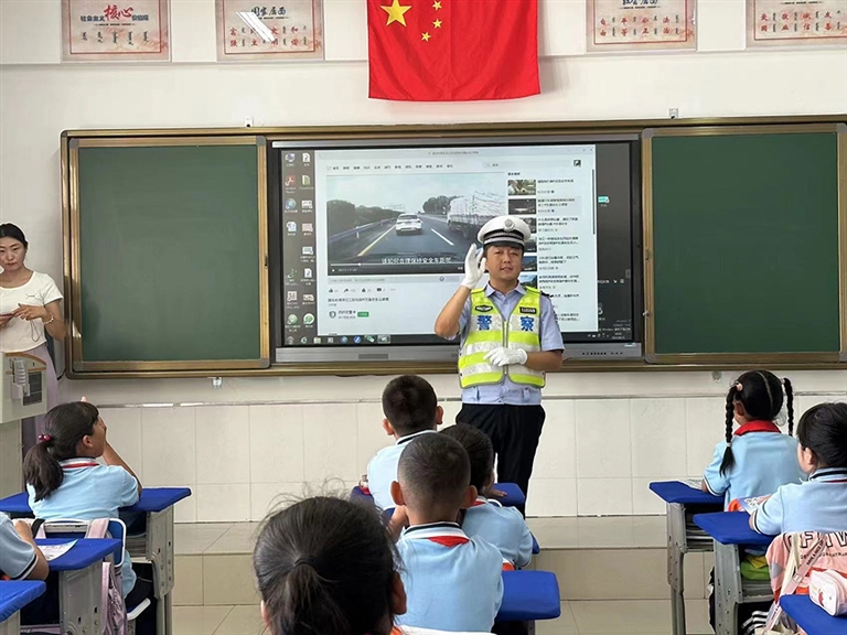 连日来,乌拉特后旗交管大队组织宣传民警走进各中小学校围绕“知危险、会避险”主题,开展交通安全宣讲活动,让学生们进一步提高交通安全意识和自我保护能力。