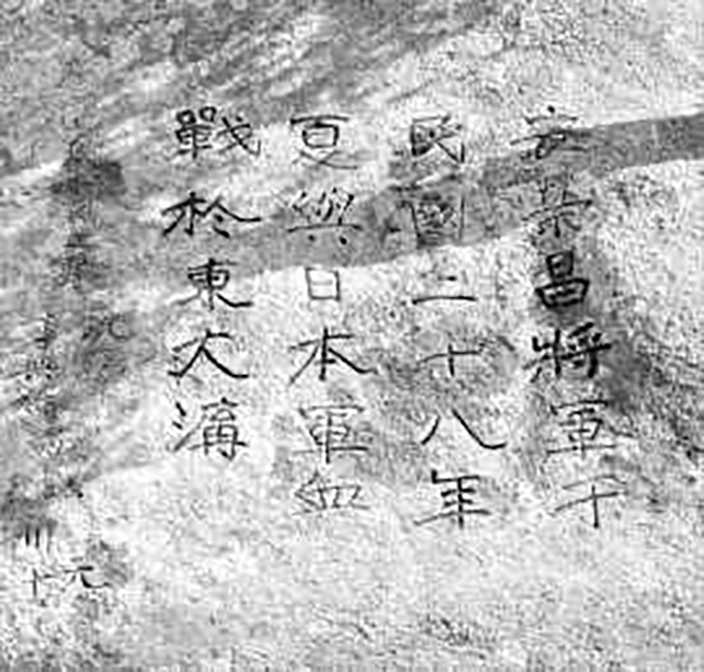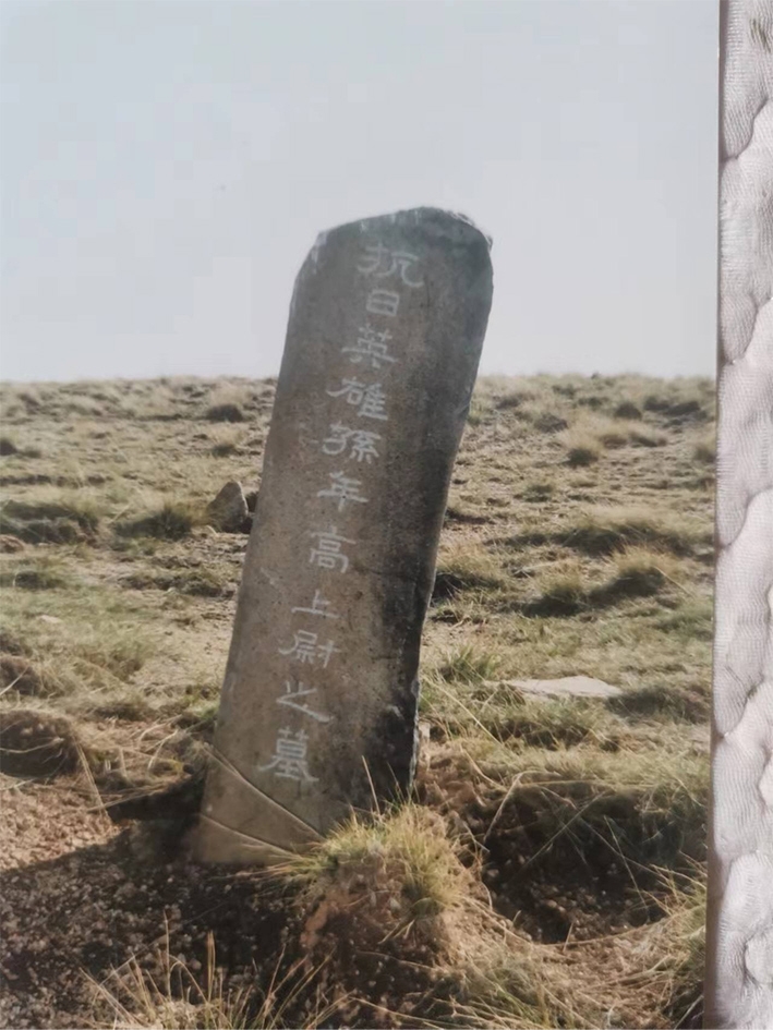 听了张六女的亲身经历后,在张套小的带领下,几人来到了张六女所述的当年战场所在地——一个离村子五六里的山沟里。在几块天然而成的巨石上,刻着如下文字:“安荣昌将军于民国二十八年夏与日军血战于东大沟”,落款为“己卯榴月上浣李兴祚、沈砚书敬志,束为卅十元”。己卯榴月即1939年农历5月,上浣为农历的第一个旬日,如同现在的上、中、下旬。刻碑人李兴祚、沈砚书应是亲自参加此次战斗的安荣昌部下,为纪念与日军在此地血战,自费三十元现洋请人刻碑于此,以纪念此次战斗。在此碑刻偏东南方向约一公里处,有两处条石状墓碑,高出地面约七十公分,宽25公分,厚度不等,平均约十公分,碑文用正楷书写,分别为“抗日英雄孙年高上尉之墓”和“抗日英雄张万山之墓”。附近还有在作战中牺牲的战士集中墓地。据张六女回忆,他生于1927年,打仗那年他虚岁13岁,给西公旗的一个分管兵丁的管事放骆驼。他正在野外放骆驼时,仗就打起来了,受到惊吓的骆驼都跑了,他也跑回村里躲藏,后来听村里的大人说,这次和日本人打仗的是傅作义的三十五军,来到这里的有一个团,团长姓宋,就住在他们村里。村子南边有部队挖的战壕,这些战壕是部队轮流换防陆续完成的。当时,日军从大佘太过来,双方在这一带交了火,国军牺牲了很多人。