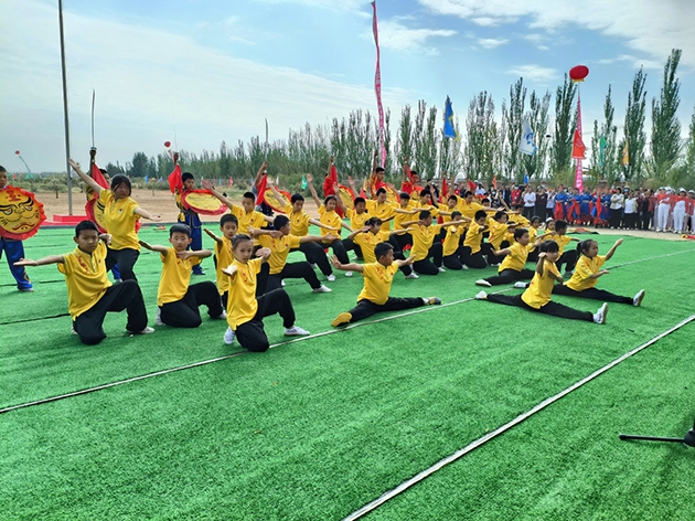 来自阿茨嘎查、巴音毛道嘎查、巴音布日格嘎查、包勒浩特嘎查和哈业乌素嘎查的牧民带来了6个热场广场舞表演。开幕式上,12个嘎查代表队着盛装依次入场。歌舞表演《牧民歌唱共产党》、广场舞《老妹你真美》、合唱《朋友》等表达了沙金套海苏木各族群众对远方朋友的热情欢迎和深情祝福;磴口县少林武校的小朋友们表演了武术节目《精武少年》,刀枪棍棒轮番上阵,动作一气呵成,引得人们纷纷围观拍照;蒙古族传统舞蹈安代舞大气优雅,具有浓郁的生活气息。表演活动在广场舞《歌唱祖国》中结束。