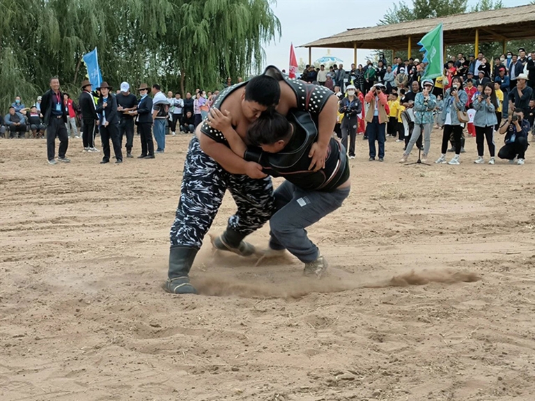 上午进行的赛马和摔跤比赛成为大家关注的焦点。“我是从临河来的,特地来看赛马,今天的比赛真精彩!”临河市民屈先生激动地说。