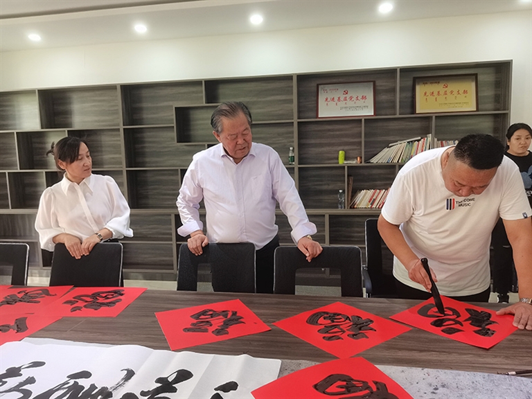 同时,辖区的书法爱好者以迎中秋庆国庆为主题现场挥毫泼墨,书写了一幅幅书法作品。