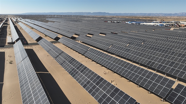 巴彦淖尔市蒙能能源有限公司100万千瓦光储+生态治理项目磴口县85万千瓦子项目位于沙金套海苏木,预计年底并网发电。项目采取光伏发电与沙漠治理相结合的方式实施,将充分利用板下及板间区域种植沙生植物,实现光伏发电+沙漠治理+沙产业协同发展。