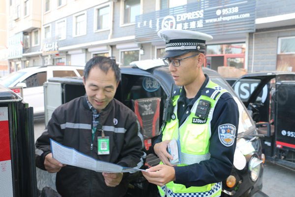 近日,前旗交管大队组织民警走进快递公司,发放交管大队编写的宣传资料,现场为快递员讲解超速、超员、疲劳驾驶等交通违法行为、交通陋习的危害性,要求快递员严格遵守交规、文明行车。同时,民警检查快递送运车辆的车况,强调企业负责人要确保车况良好。