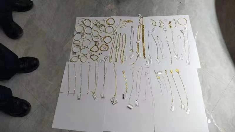 民警赶到现场后,经现场初步勘验和查看监控视频,确认犯罪嫌疑人是使用暴力手段,强行砸坏珠宝店卷帘门和玻璃进入店内实施盗窃的,且犯罪嫌疑人具有较强反侦查意识,为了隐藏自己的身份,在作案过程中,一直戴着帽子、口罩遮挡面部,为了防止留下指纹还佩戴了手套。店内放置黄金首饰的柜台被其用锤子砸烂,价值40余万元的金项链、金手镯、金戒指等物品被洗劫一空。