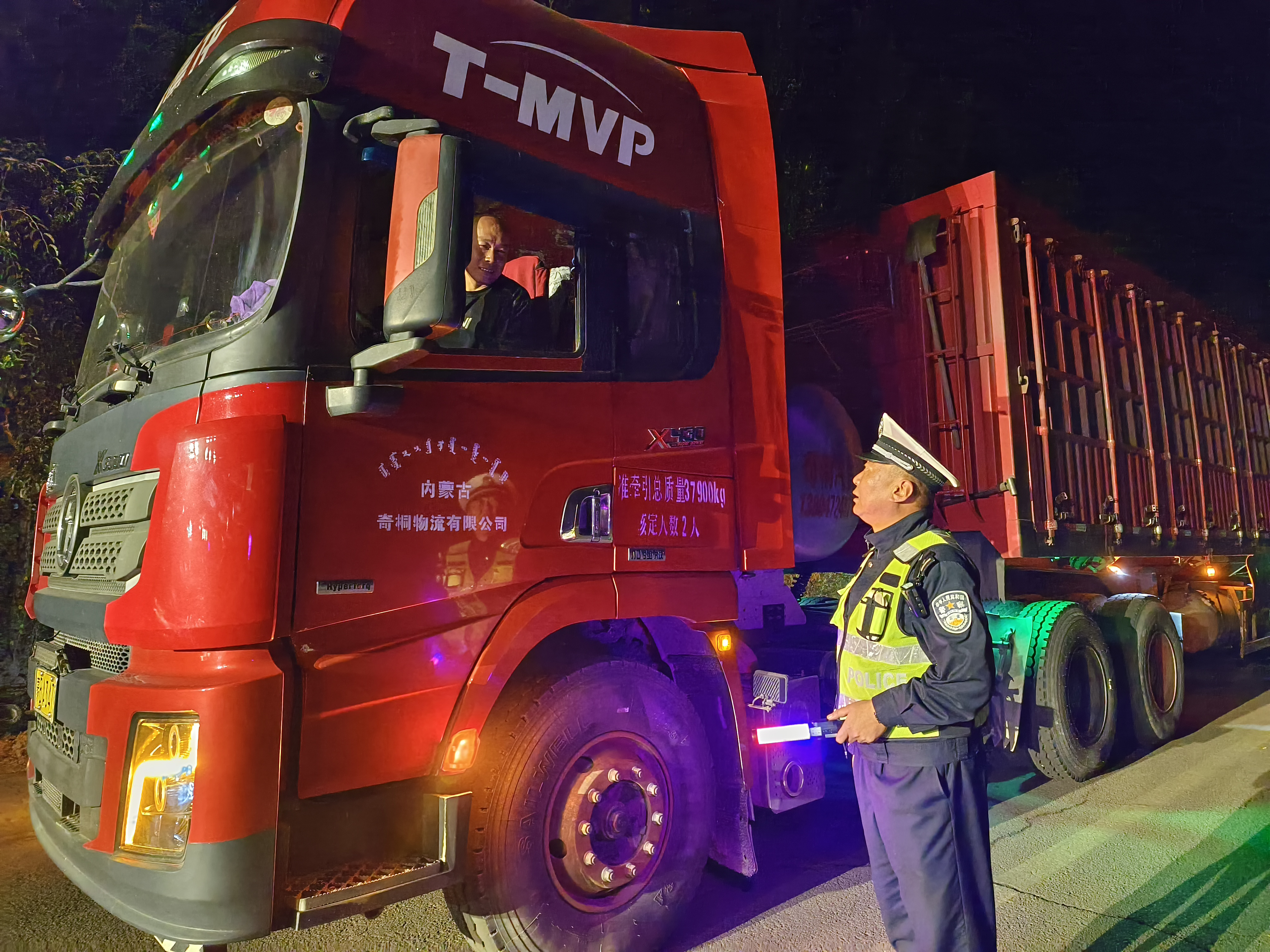 近日,乌拉特中旗交管大队持续开展冬季突出违法行为专项整治行动。行动中,民警对过往大货车逢车必查,对超载、非法改装、疲劳驾驶等违法行为严管严查,查获13起货车超载违法行为,有效净化了辖区道路交通环境。
