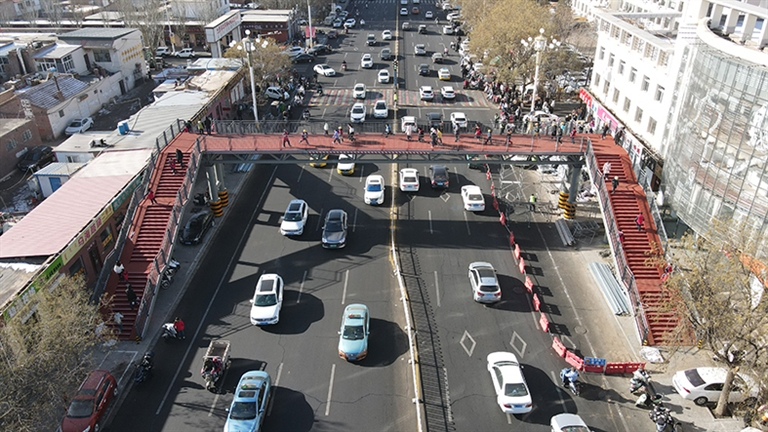 “天桥通行后,我们过马路更安全了,还省了等红灯时间。”临河市民张女士说。