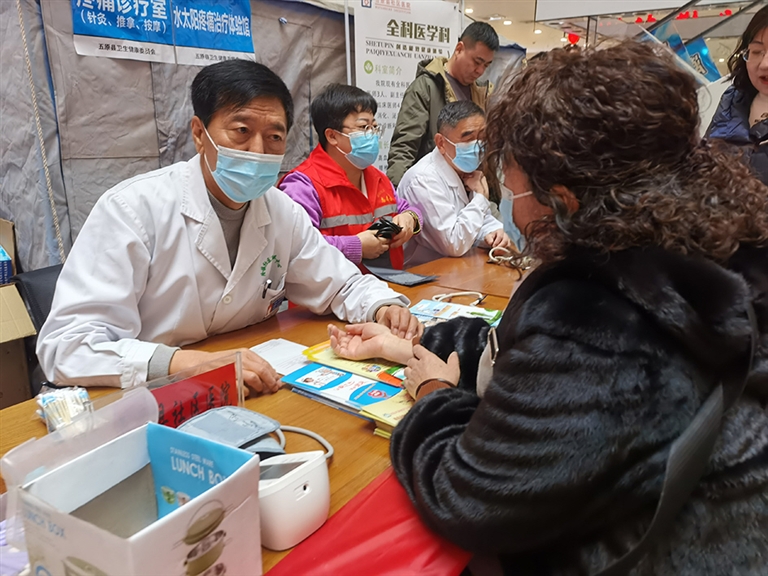 活动现场,县直各医疗机构将疼痛诊疗室、水太阳疼痛治疗体验馆、心电图诊查室、彩超诊查室等搬到大型商场,通过现场把脉、问诊、治疗,现场测压、测糖,现场开方、送药等方式,将新春的健康送到广大干部群众中间。