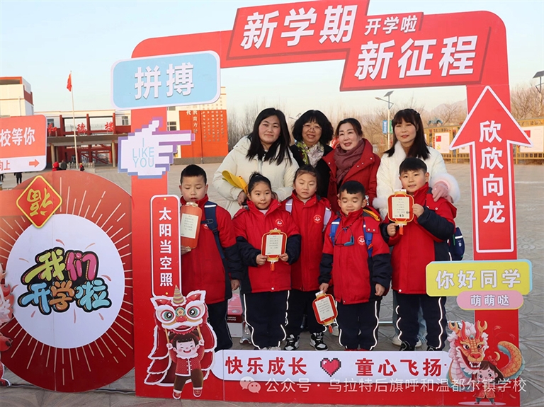 五彩缤纷的励志对联、新学期祝福棒棒糖、击鼓摸葱、跨栏入校、点朱砂痣、过龙门、取香囊……2月26日,乌拉特后旗各中小学校、幼儿园精心准备了新学期入校仪式,营造了浓厚的开学氛围。