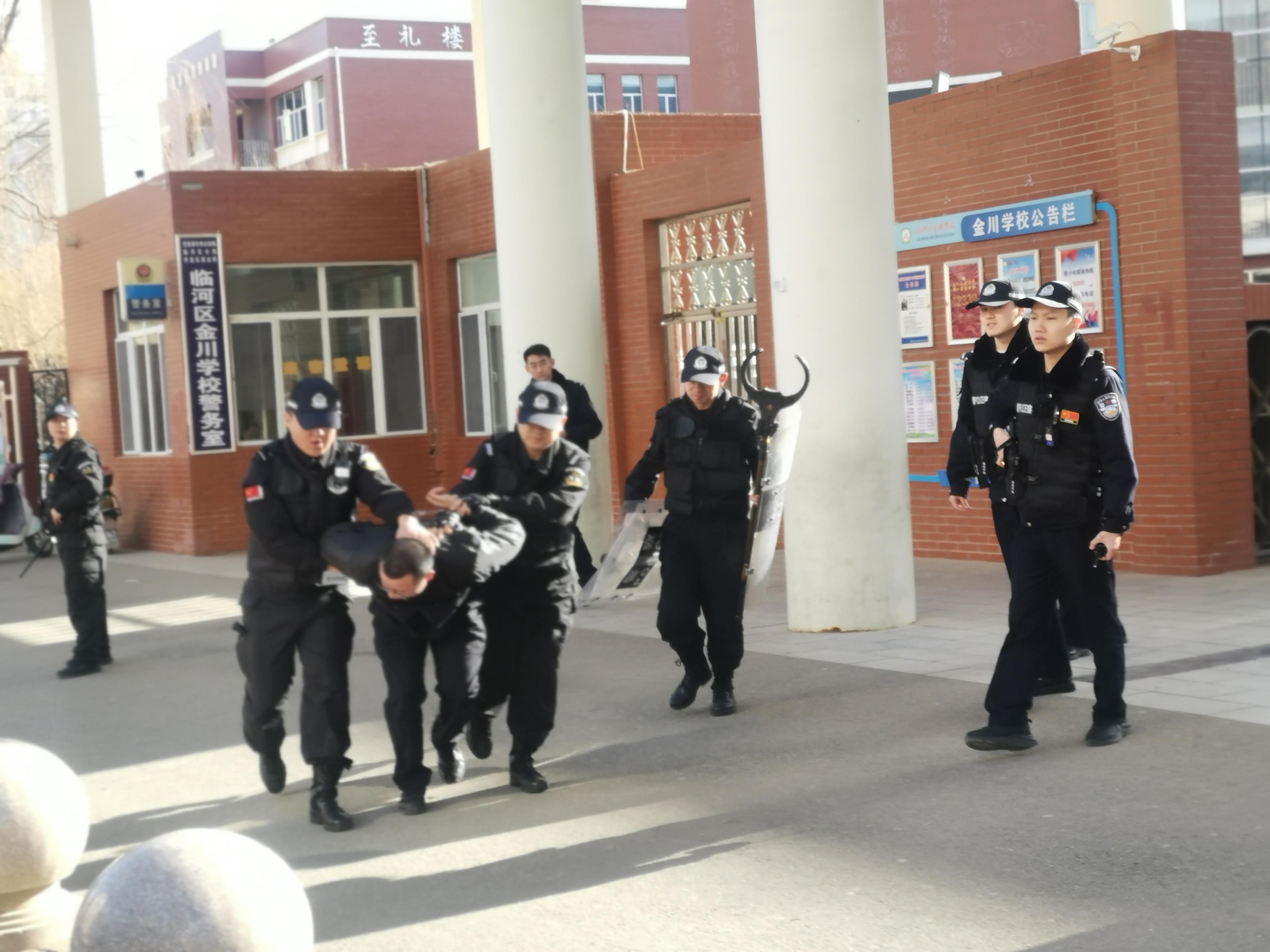 近日,巴彦淖尔市公安局临河分局反恐怖和特巡警大队在临河区金川学校东门开展了一场处置突发性案件演练。