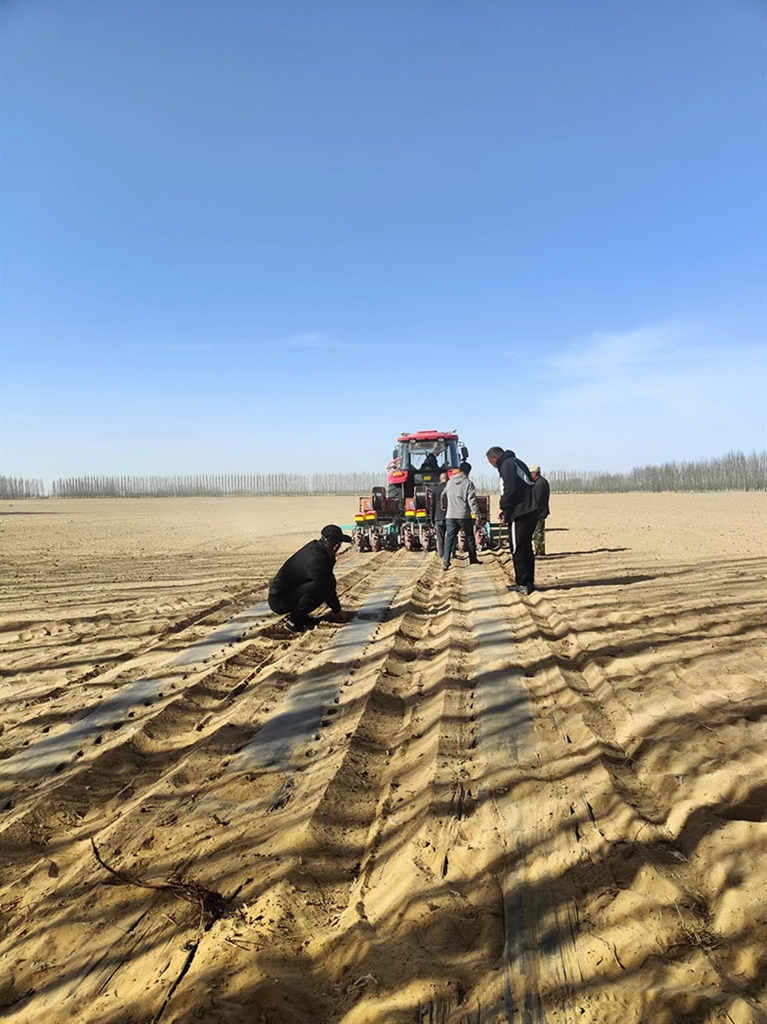 近日, 全市玉米整建制单产提升春播现场培训会在磴口县沙金套海苏木温都尔毛道嘎查兴泰家庭农场举办。