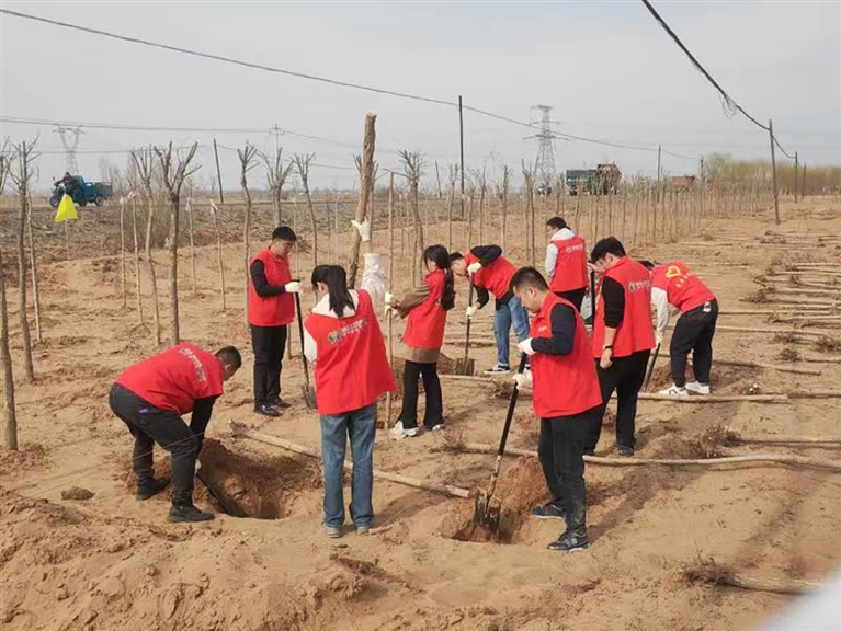 4月8日,陕坝农商银行积极响应杭锦后旗团旗委号召,以党员团员为代表,组织了13人的志愿者队伍,来到蒙海镇开展“同心植树添绿 共赴春天之约”主题党团日活动。大家挥锹铲土,扶苗填坑,培土围堰,严格按照技术人员的指导进行操作,合力种下一棵棵希望的树苗。