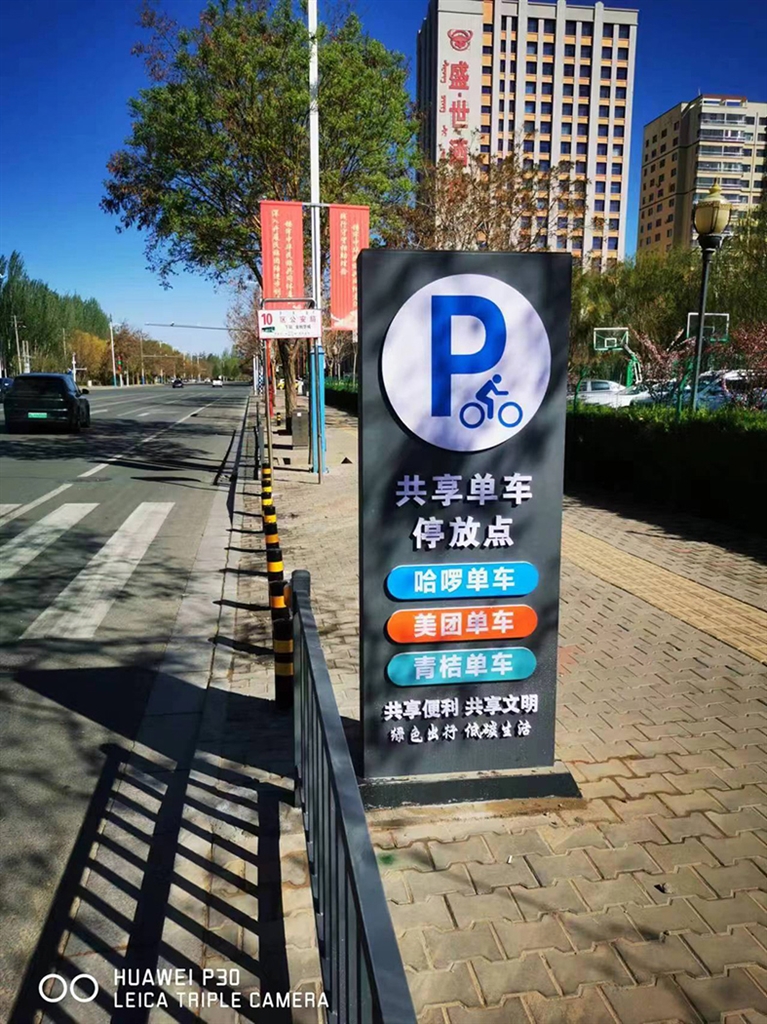 4月23日,在临河区政府西侧人行道上,一块新设立共享单车停放点的指示牌格外醒目。从即日起,临河区城市管理综合行政执法局计划在临河城区规划设立12个共享单车实体围栏,规范共享单车停放秩序。