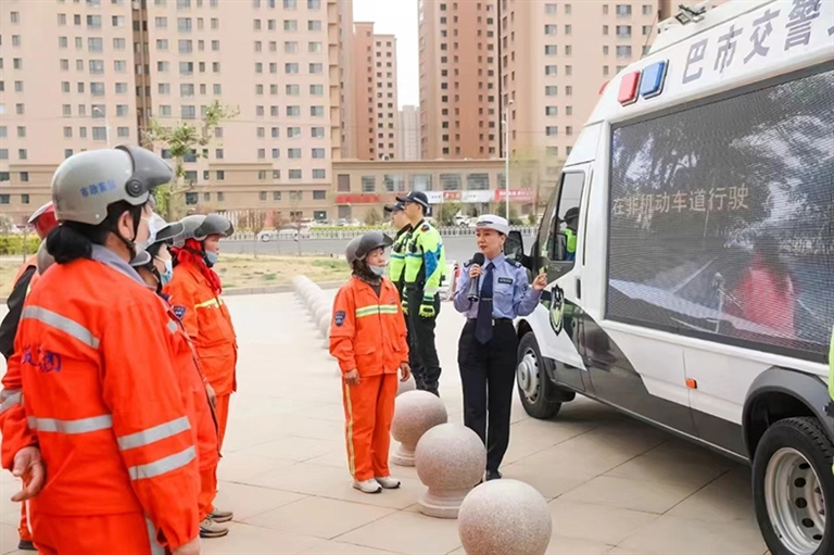 近日,市公安局交管支队联合市总工会,以“‘交警蓝’守护‘环卫橙’”为主题,为巴彦淖尔工人文化宫工会驿站内休息的20余名环卫工人送上了一堂交通安全课。