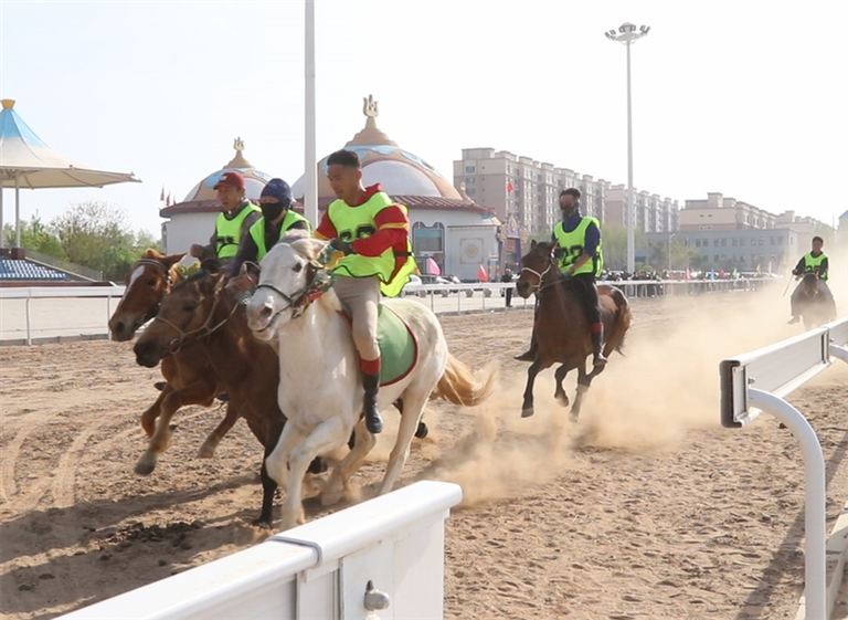 赛马场上,随着发令枪响,一匹匹骏马呼啸而过、踏风而来,带起尘土飞扬。骑手们你追我赶、纵情策马,展现了马背民族的英雄气概,为现场观众带来了一场激烈的角逐盛宴,赢得了连连喝彩。“能和来自全市各地的赛马爱好者同场竞技,我很荣幸,也希望以后能多多举办这种赛事,让我们能再来一次酣畅淋漓的竞赛。”4000米赛马比赛小组冠军段龙说。