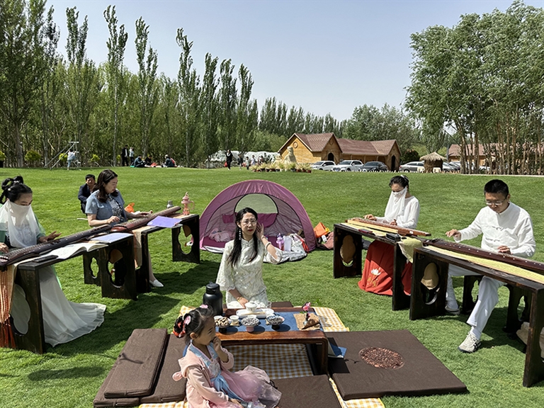 今年5月21日是第五个国际茶日。5月19日上午,“2024内蒙古第五届国际茶日大型户外无我茶会·巴彦淖尔分会场”活动在临河五星莊园业主草坪公园举行。