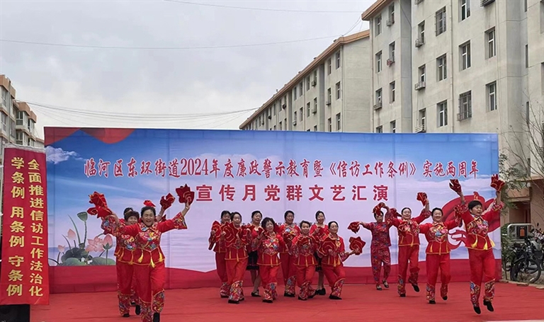 5月28日,临河区东环街道联合东发社区,在临河闻都新苑小广场举办了廉政警示教育暨《信访工作条例》实施两周年宣传月党群文艺汇演活动。