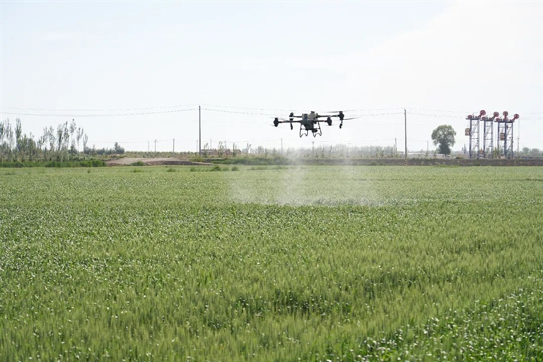 “当前是小麦成长的关键期,此次喷洒的主要是植物生长调节剂和叶面肥,可以为小麦提供生长所需的营养元素,促进小麦生长和发育。”临河区农牧局农技推广研究员王玉海说,“从今天开始,三个中标服务组织共出动60余台专业植保无人机在各乡镇、农场同步开展小麦‘一喷三防’作业,计划用一周时间,实现全区小麦‘一喷三防’全覆盖。”